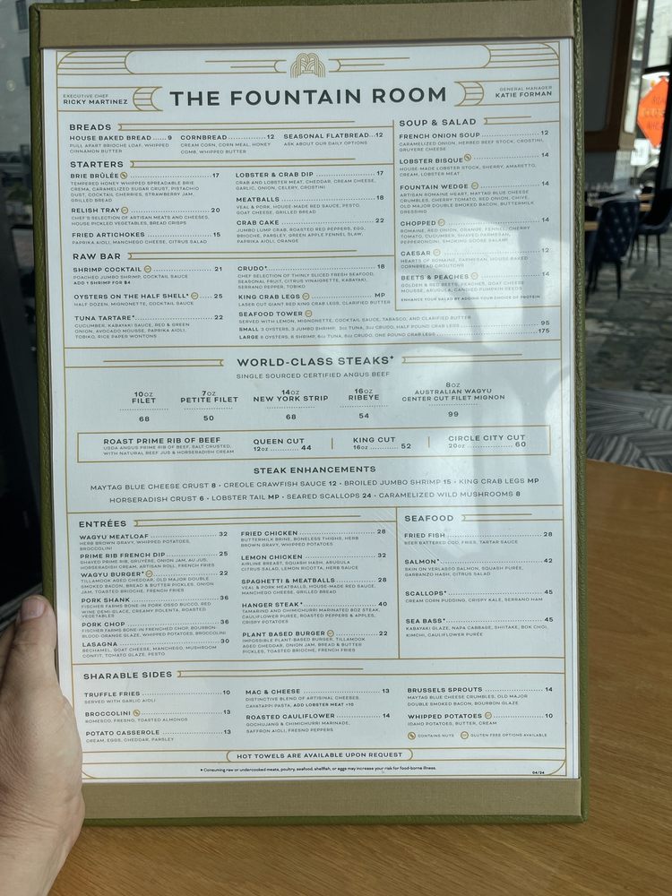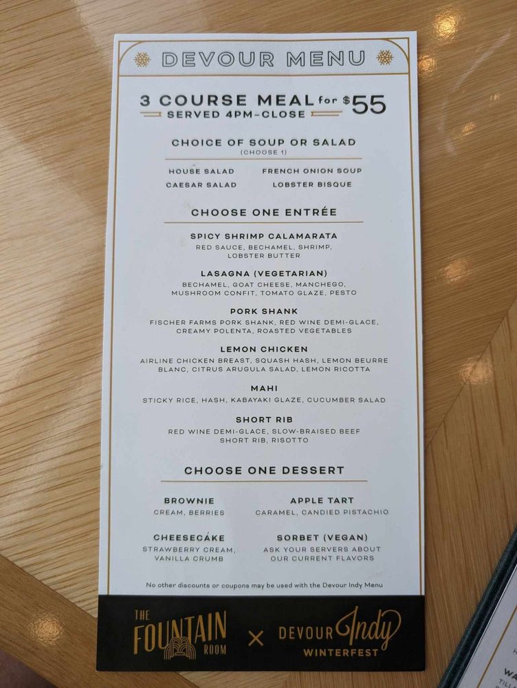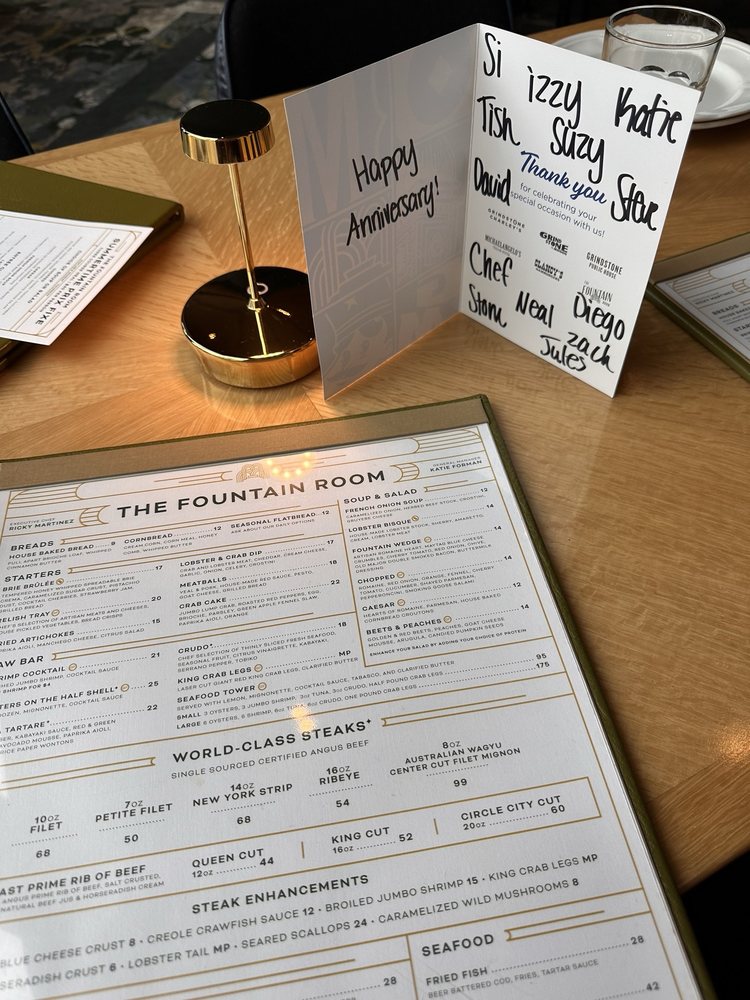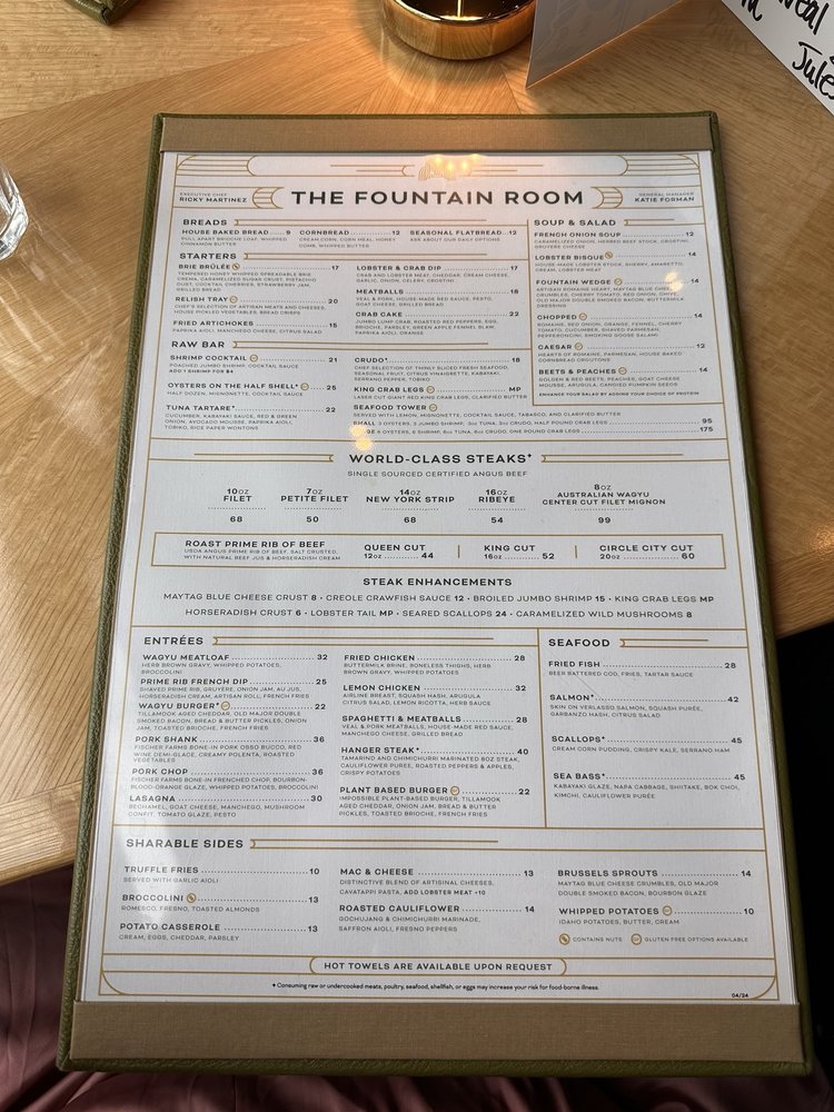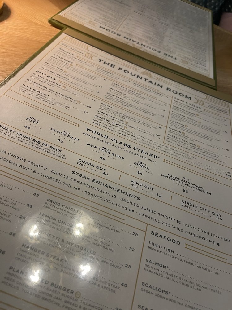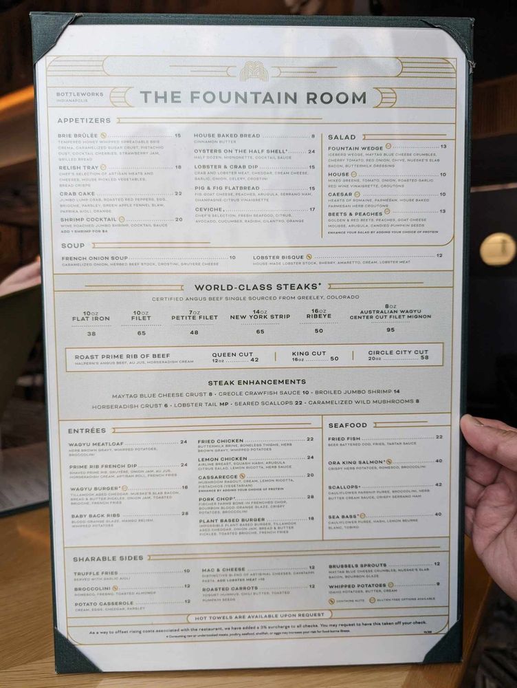 The Fountain Room, located in Indianapolis, is a trendy, intimate, and romantic supper club offering steakhouse and seafood options. With a classy and upscale ambiance, this restaurant provides a variety of amenities such as reservation options, takeout, delivery, and even catering services. The menu features house baked bread, seasonal flatbreads, brie brûlée, shrimp cocktail, oysters, tuna tartare, and more. Customer reviews rave about the superb service, delicious steaks, and exquisite cocktails. Overall, The Fountain Room is a must-visit dining destination for those looking for a memorable and high-quality experience in a beautiful setting.